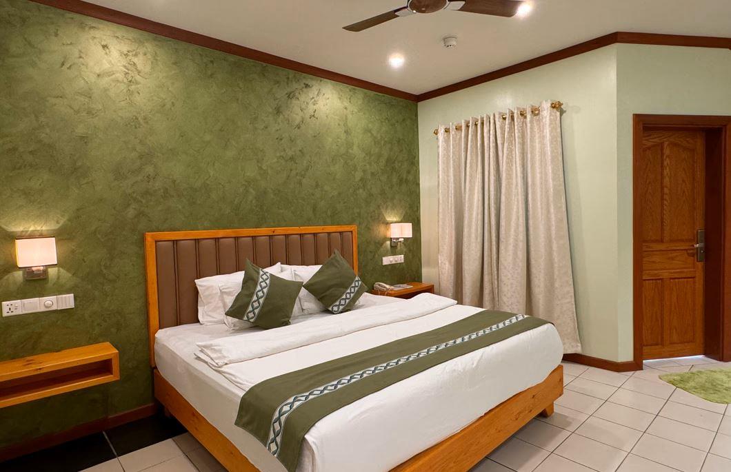 Мы заказали виллу Делюкс Бич с полным планом питания. Однако, по прибытии, мы решили обновить наш план питания до пакета Все включено, и мистер Айхам, агент бронирования очень помогает сделать это быстро. У нас был потрясающий вид на закат с видом на водную виллу. Наш номер хорошо облегчен, за исключением ванной комнаты, которая немного захудалая. Еда, которую подают в ресторане Palm Grove, просто вкусная и вкусная, по-настоящему сытная. Тем не менее, мы были разочарованы тем, что пакет «Все включено» не включает свежие соки, мини-бар и мороженое. Иначе все было бы идеально. На острове Фихалхохи есть захватывающие белые песчаные пляжи, а кораллы на северо-востоке (рядом с пляжем залповая сторона) просто завораживают. Мы заметили угря и множество видов разноцветных рыб. Кораллы хорошо сохранились, а подводный мир - просто потрясающий опыт. Мы рекомендовали обязательно посетить причал снабжения вечером, чтобы увидеть много рифовых акул, тусующихся там. И в день отъезда мы также стали свидетелями того, как около полудня на причале появились анчоусы, охотящиеся на рыбу покрупнее. В целом, мы наслаждались нашим коротким отдыхом в Фихалхохи, поездкой, которую действительно стоит посетить. Спасибо, Фихалхохи.